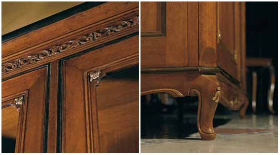 Showcase Villa from the Italian manufacturer Arve Style. Showcase 2-leaved glazed. Frame, base made from solid wood. Walnut is used as decoration. Decor elements are carved and inlaid fronts. Available model on a massive basis and on a low carved legs. The thread can be covered with gold leaf.