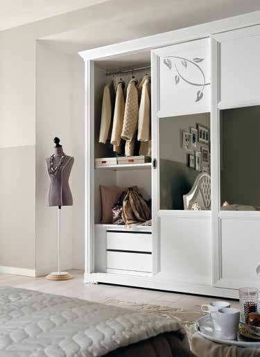 Bedroom set in white lacquer with painted Camelia, Arve Style