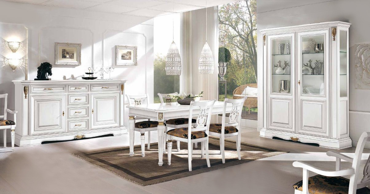 For dining room set in white lacquer with carvings Vivre Lux, Arve Style