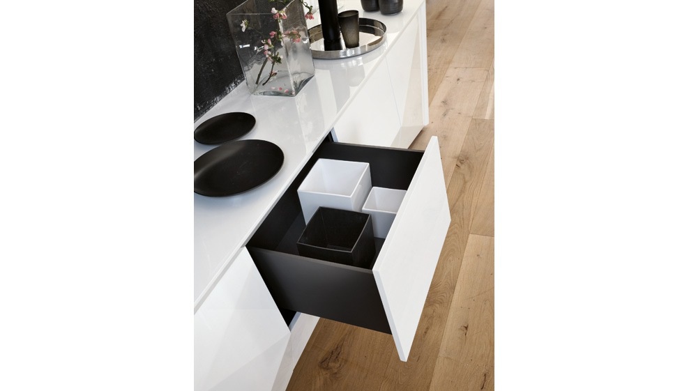 The Sapphire buffet features Italian furniture manufacturer Rossetto Armobil. The model is original and practical to use. The counter has multiple compartments with easy opening system, as well as roomy drawers. The lack of visible hardware and performance of the original facades, which give the design a unique look. There are various finish options. The model will decorate the living room in modern style