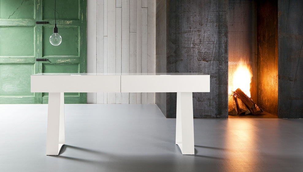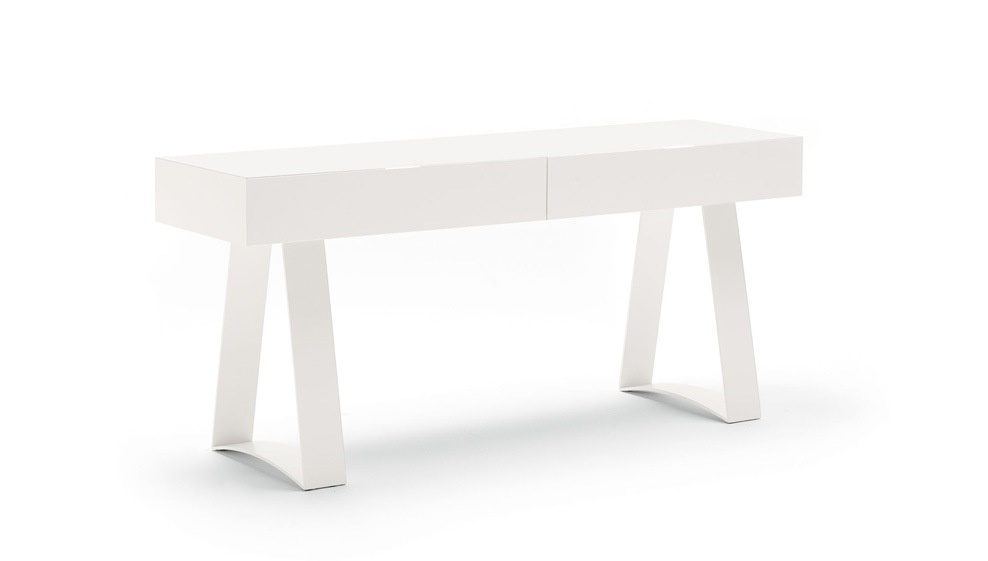 Desk Lounge from Italian furniture manufacturer Rossetto Armobil. Model with 2 drawers. Finish lacquered matte or glossy. Table with metal legs, Matt lacquer finish in white. Possible treatment option boxes skin. The model is made in a modern style