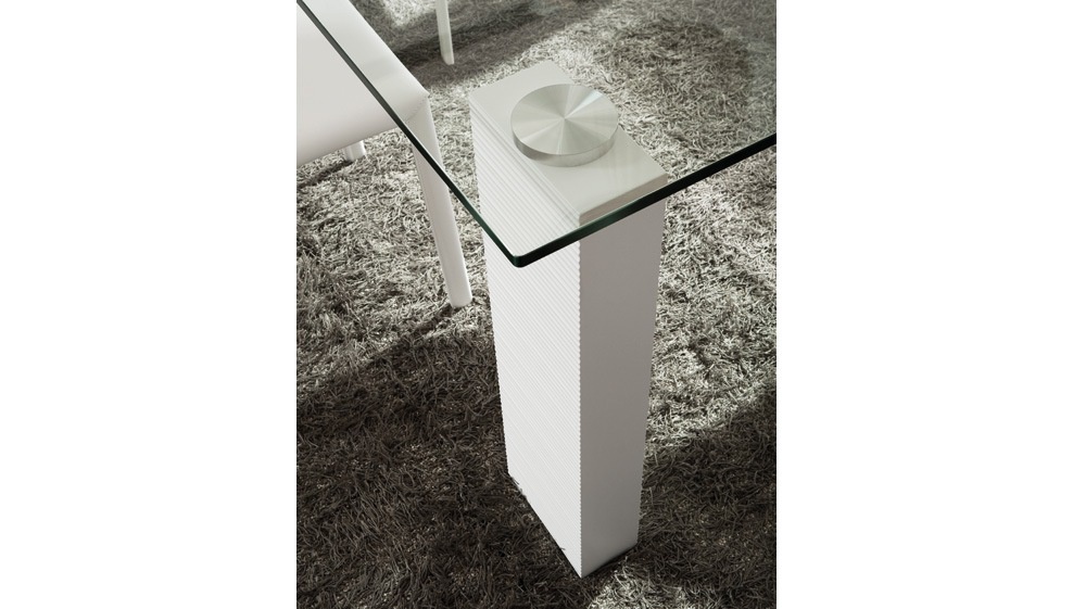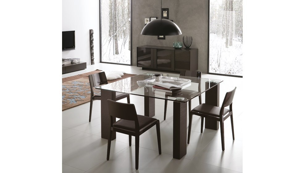 Tween dining table from renowned Italian furniture Rossetto Armobil. A model with a top made of transparent tempered glass and solid rectangular legs with rylenol finish, the perfect complement for living room in modern style. The manufacturer offers square and rectangular versions of this model. Finishes in stock.