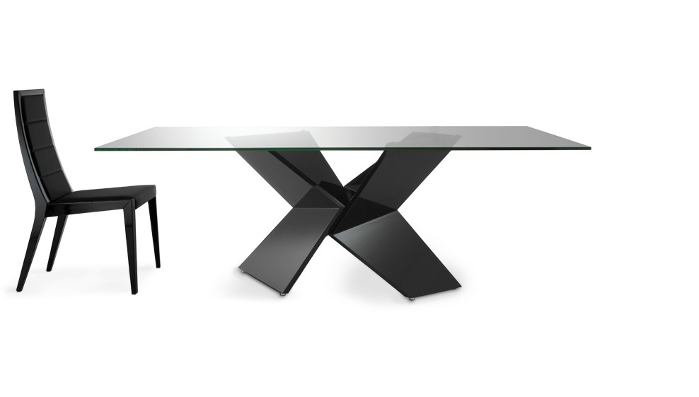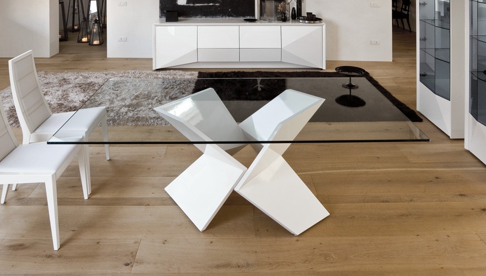 The Sapphire dining table from renowned Italian furniture Rossetto Armobil. A model with a top made of transparent tempered glass, figure wooden base, lacquered. Finish the catalog of the manufacturer. The perfect addition for living room in modern style