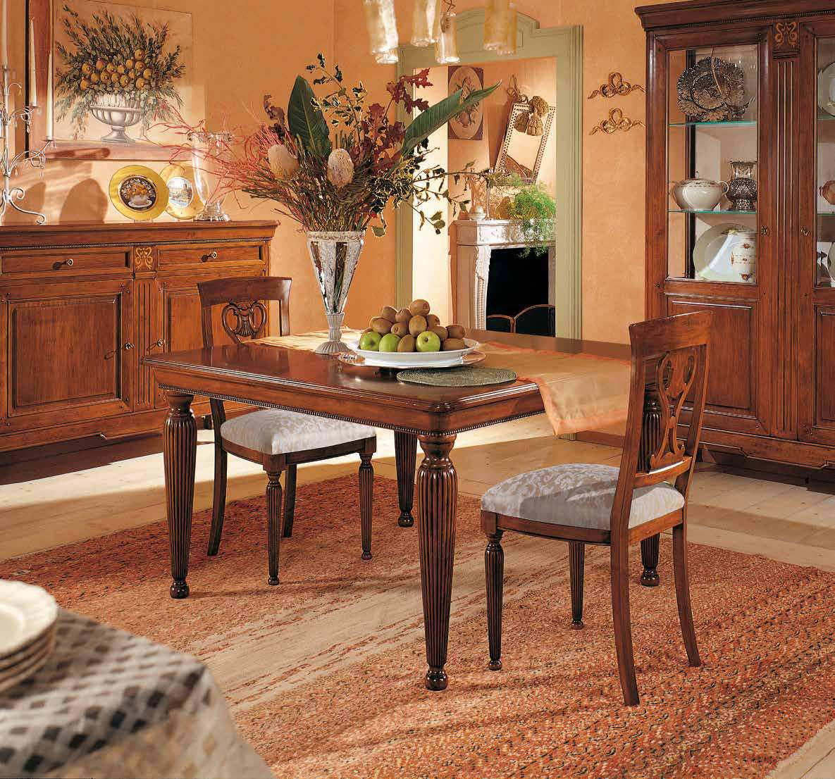 Set for the dining room in the classic finishing of walnut Cavour, Arve Style