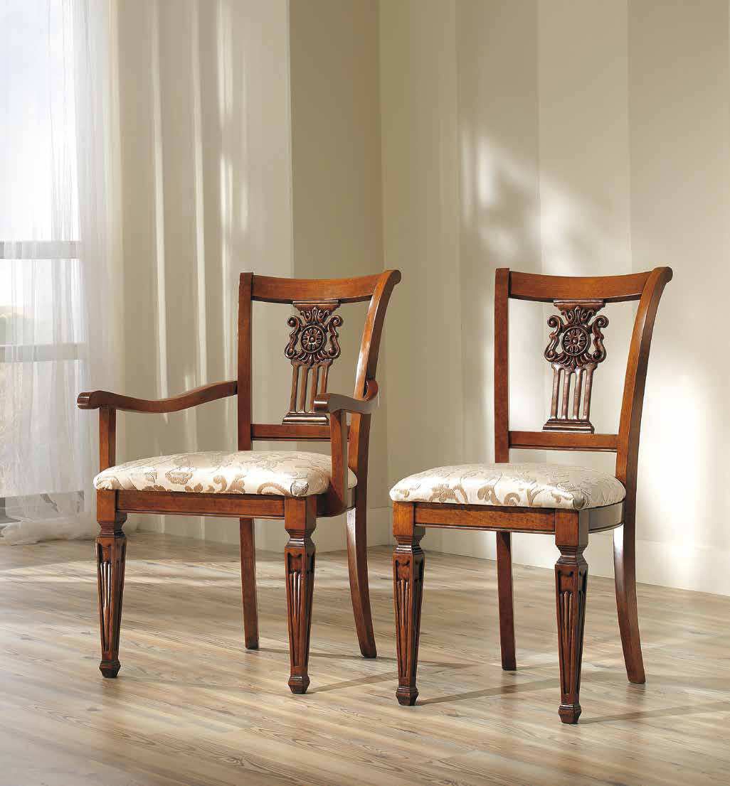 Set for the dining room Lux Vivre from Italian manufacturer Arve Style. The set includes: dining table, chairs with or without armrests, cupboard and showcase with 2 swing doors in glass. Frame, base made from solid wood. Walnut veneer acts as finishing. The profiled frame. Accessories metal. The decor is rich inlay, exquisite lacquered thread. Set in a classic style. The perfect choice for a classic interior dining room.