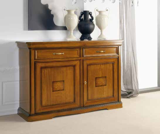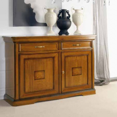 A snack bar Exclusive from the Italian manufacturer Arve Style. The product is equipped with 2 hinged doors and drawers. Frame, base is made of solid wood. Finish - walnut veneer. The body is decorated with profiles. Accessories metal, refined. The decor is a thin incrustation of the facade. Buffet in classic style. A great choice for a classic interior.