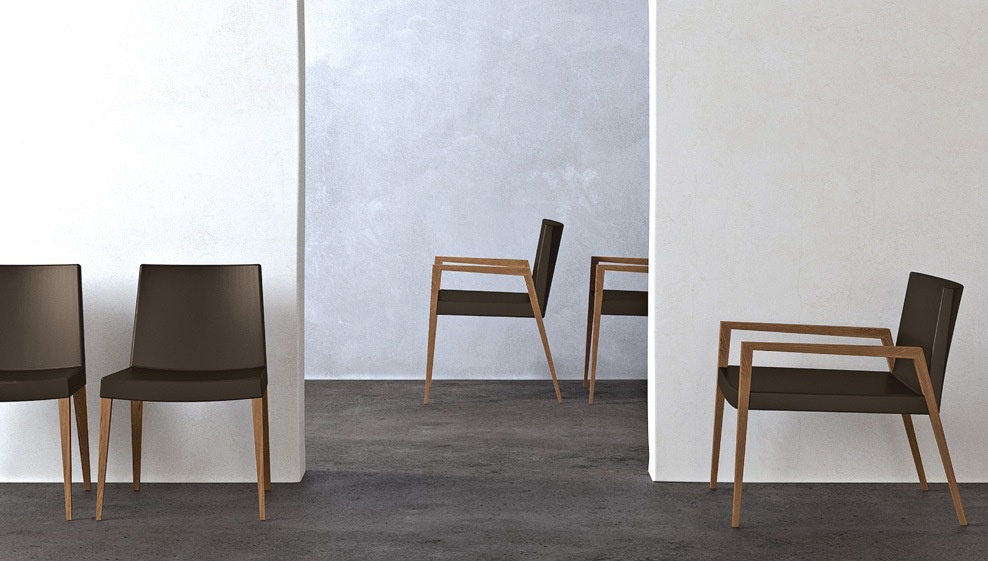 The Lounge chair by the renowned Italian furniture Rossetto Armobil. The manufacturer offers a lightweight version of the model without armrests, as well as the variant with wooden armrests. Available finishes: walnut, oak, charcoal or tobacco, varnish, matte, glossy or open-cell foam; Upholstered in leather or faux leather.