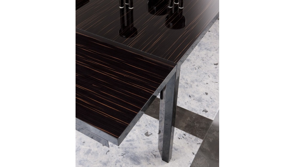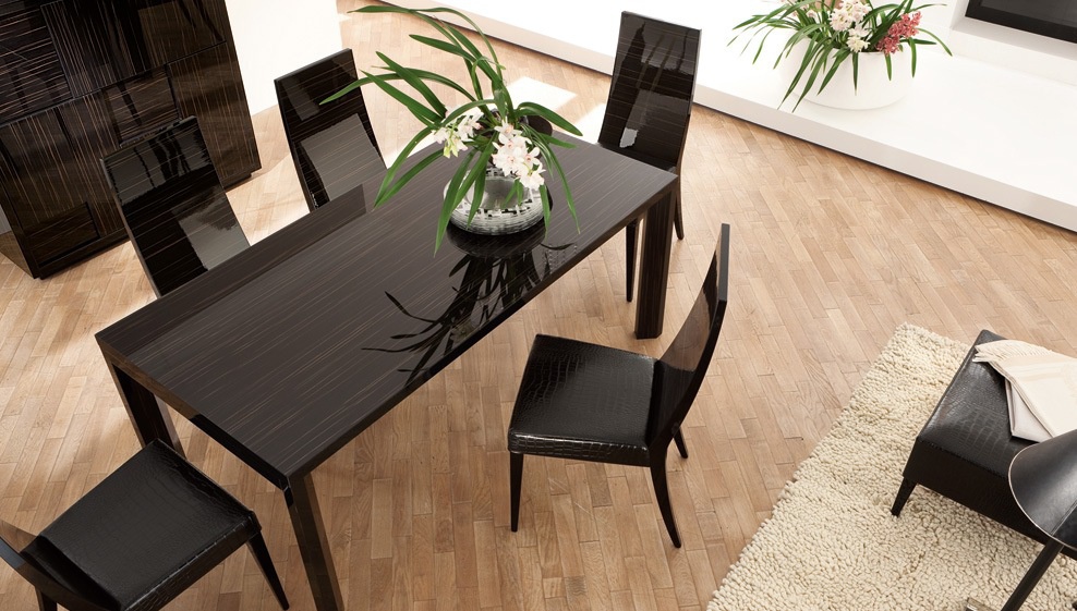 The Nightfly dining table 1,the Luxury collection, from famous Italian furniture manufacturer Rossetto Armobil. Rectangular dining table with legs original form, is turned inside. Top wood/glass. Options finish frame - lacquered ebony veneer, glossy lacquered. The variant of manufacture of top in the tree. The model is made in modern style.