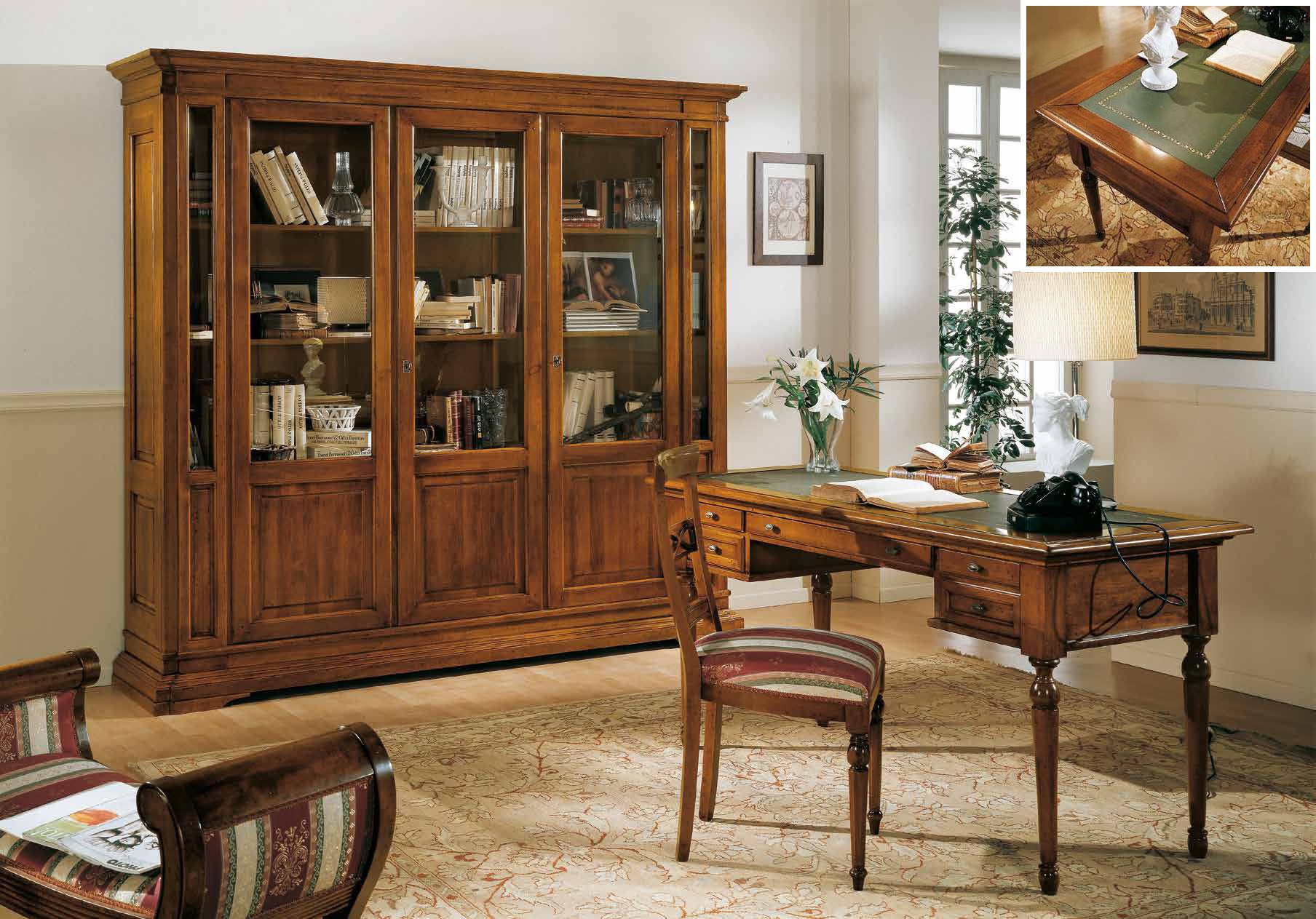 Headsets for office San Marco from the Italian manufacturer Arve Style. The kit includes a book tricuspid wardrobe, writing table with leather top. Frame, base, the table top is made of solid wood. The surface veneer out of range. Accessories metal. D?cor profiles are. Classic design, perfectly fit into the interior of the Cabinet.