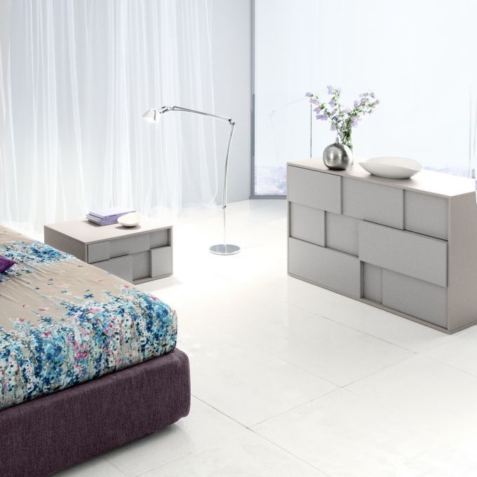 Bedroom (Suite bedroom) Letti 03 from the Italian manufacturer Favero. Body, frame - natural wood. Upholstery - textiles. Finish - Matt lacquer. The model is made in modern style. Colours in stock.