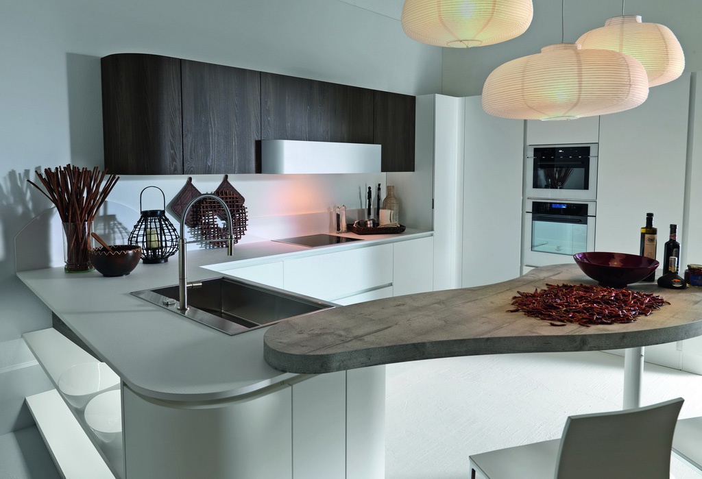 Kitchen (kitchen set) Sp.22 from the Italian manufacturer Astra. The case is natural wood. The surface is treated with lacquer. Fittings - metal. The model is made in modern style. Colours in stock.