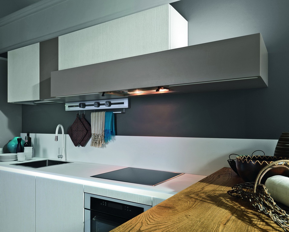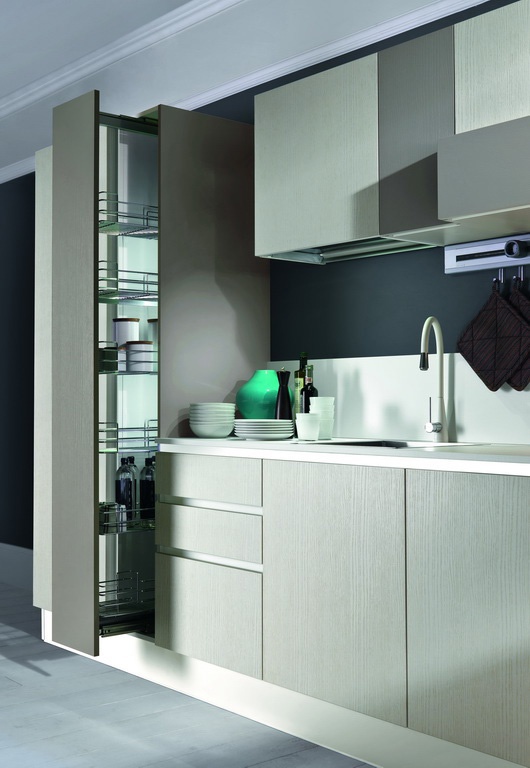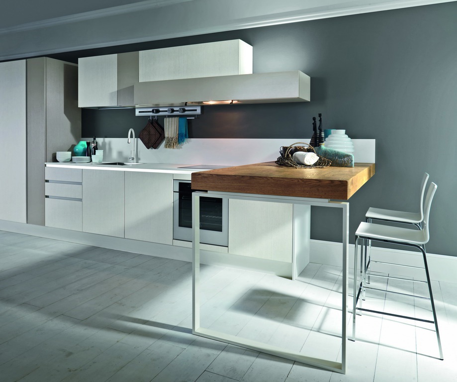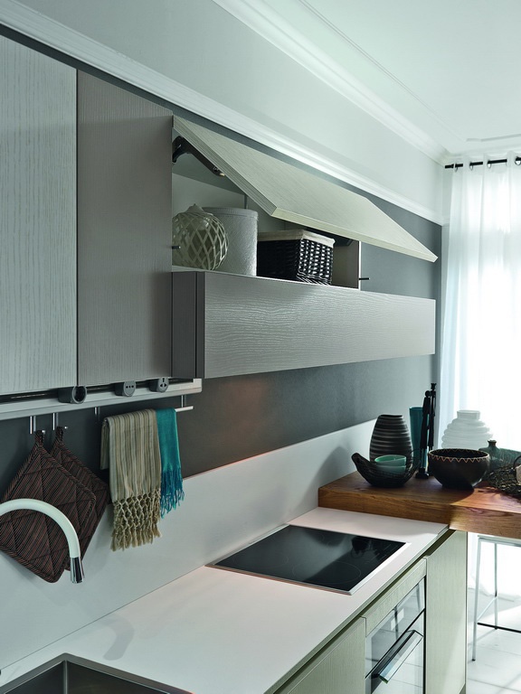 Kitchen (kitchen set) Sp.22 from the Italian manufacturer Astra. The case is natural wood. Finish - lacquered. The metal legs. The model is made in modern style. Colours in stock.