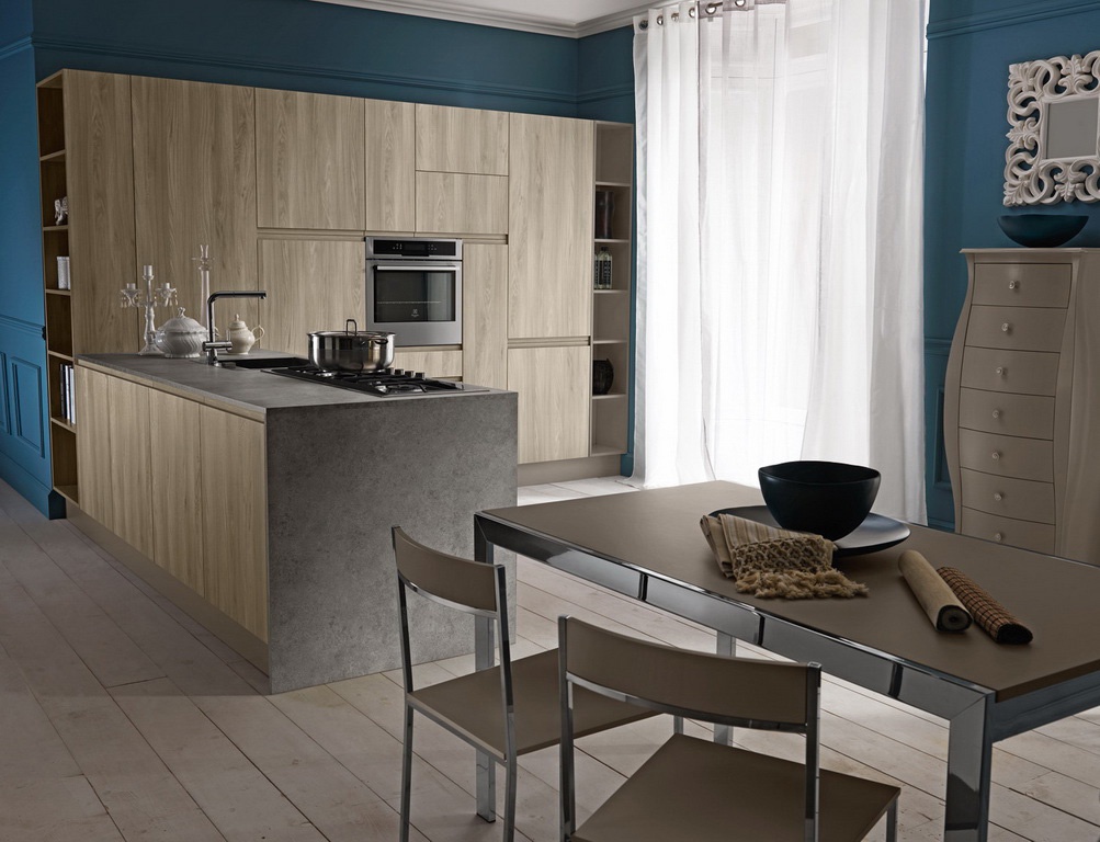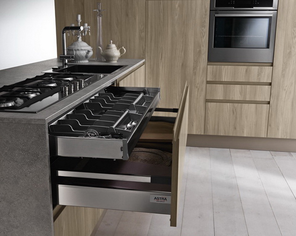 Kitchen (kitchen set) Line from the Italian manufacturer Astra. The model is made from natural wood. The surface is treated with lacquer. The style is modern. Colours in stock.