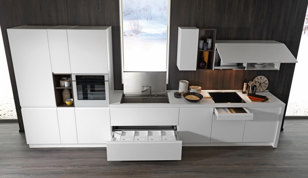 Kitchen (kitchen set) Line from the Italian manufacturer Astra. The case is natural wood. The surface is treated with lacquer. The model will perfectly complement the modern interior of the kitchen. Colours in stock.