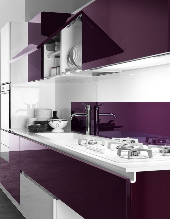 Kitchen (kitchen set) Cristal from the Italian manufacturer Astra. The model is made in modern style. The case is natural wood. Finish - gloss lacquer. Colours in stock.