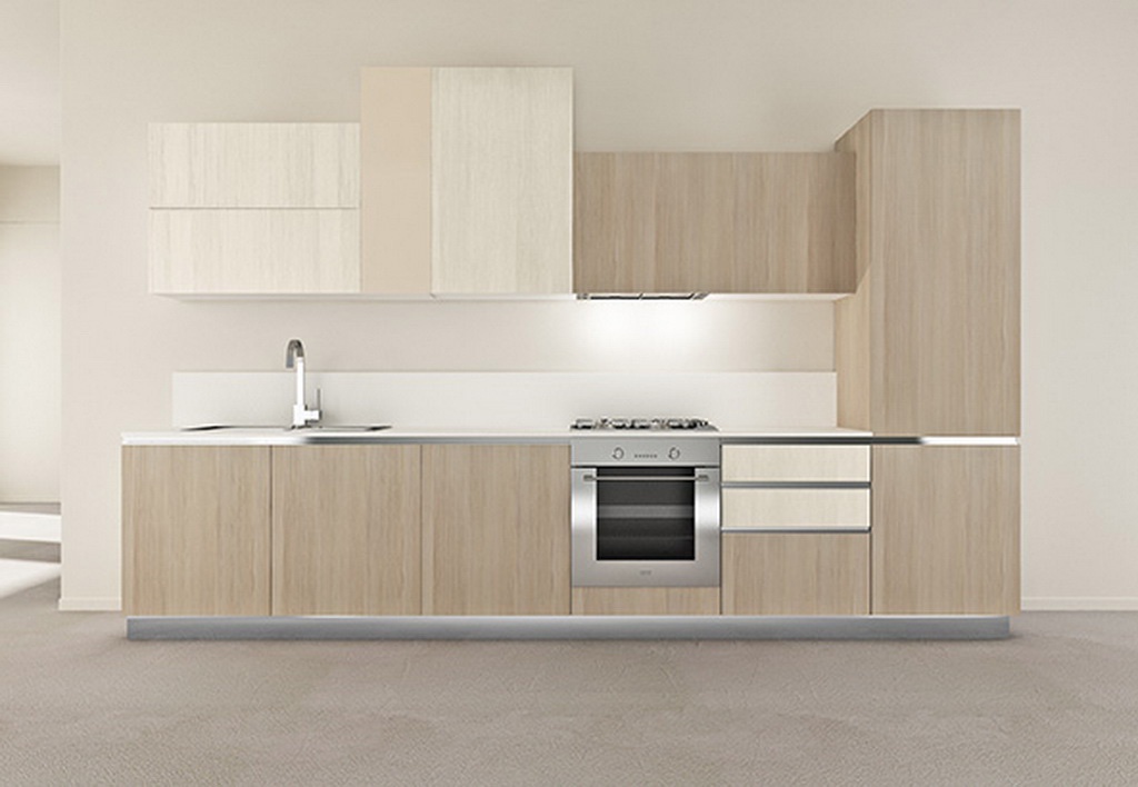 Kitchen (kitchen set) Vela from the Italian manufacturer Astra. The case is natural wood. The surface is treated with lacquer. The model is made in modern style. Colours in stock.