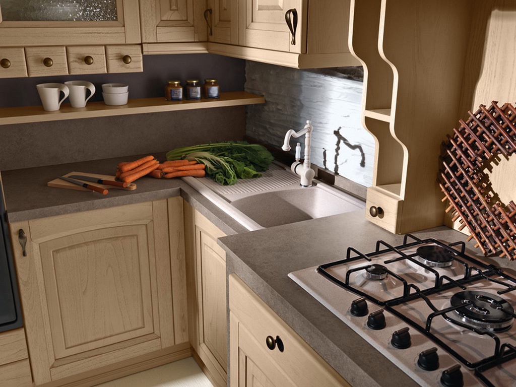 Kitchen (kitchen set) Ducale from the Italian manufacturer Astra. The case is natural wood. Glass sash. The surface is treated with lacquer. The model is made in modern style. Colours in stock.