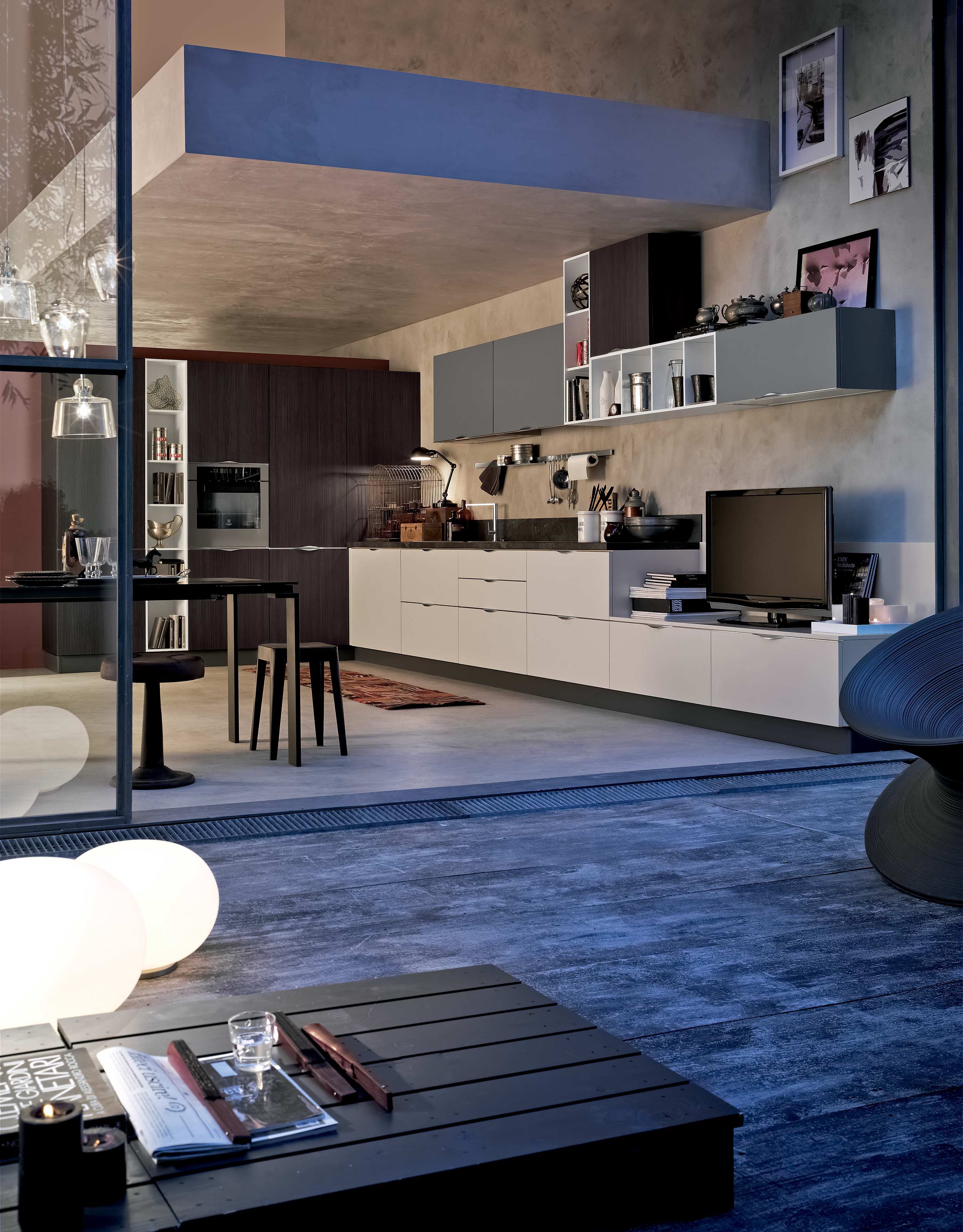 Kitchen (set for the kitchen) Next Replay from the Italian manufacturer Stosa. The case is wood. The surface is treated with lacquer. Fittings - chrome-plated steel. The model is made in modern style. Colours in stock.