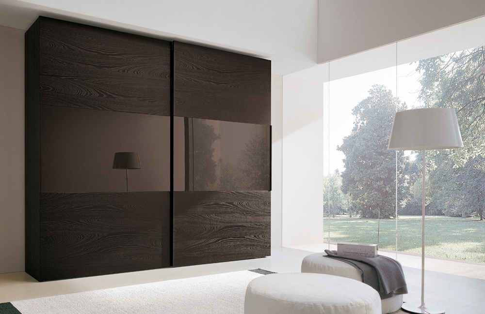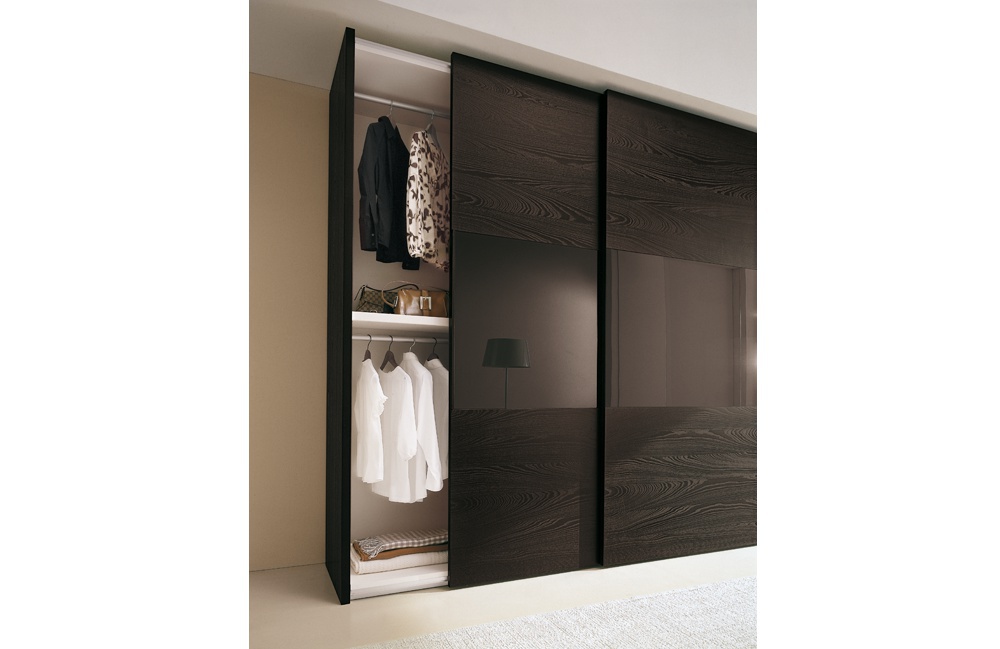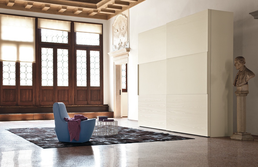Wardrobe Tre from the Italian manufacturer Cenedese. The case is natural wood. The surface is treated with lacquer. A glass panel. The model is made in modern style. Colours in stock.