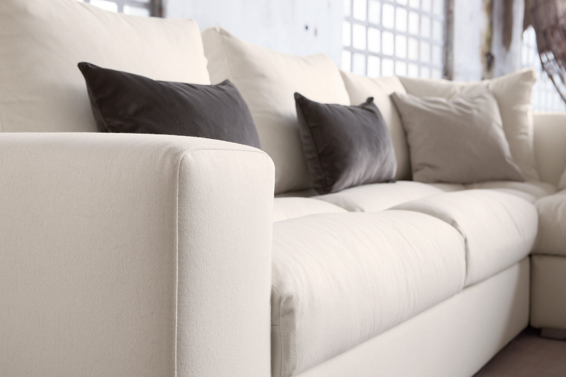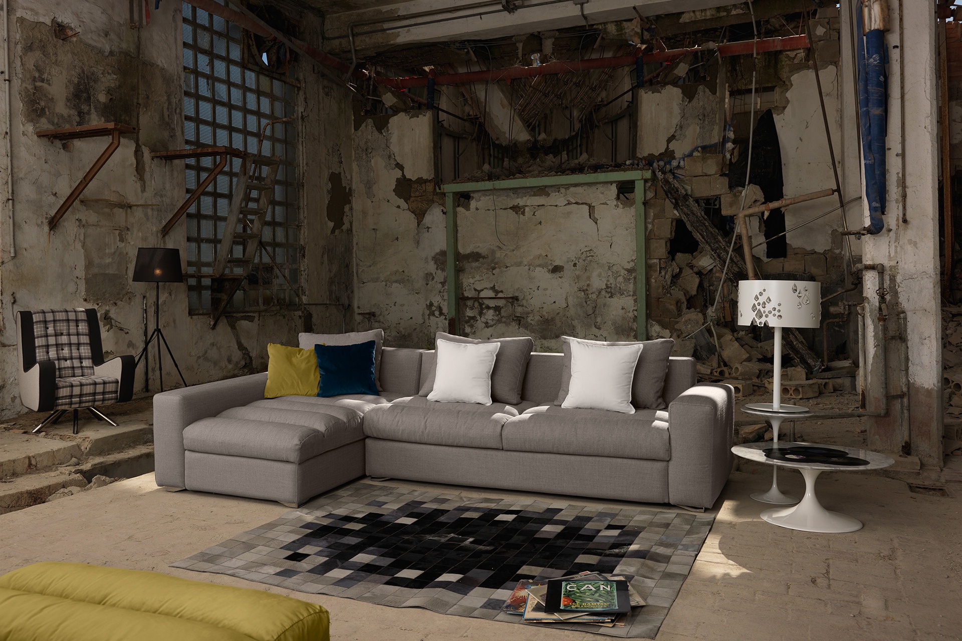 Exton modular sofa from the collection Home from the Italian manufacturer Domingo Salotti. The sofa is a modular system with bed and a fully removable elements made in a modern style. Modular systems are not strictly predetermined configuration and size and are completed by the customer. Some options presented in the photo gallery. Material - wood poplar or fir wood, upholstery - textiles plain from the company portfolio. Filler - polyurethane foam of different densities and Dacron. The system provides a version of the sofa bed; welded steel mesh in two additions, mattress height 12 cm filled with polyurethane foam in the case of cotton textiles. The design of complementary decorative pillows to match the upholstery and contrasting colors. Colors to choose from a collection company.