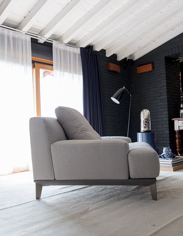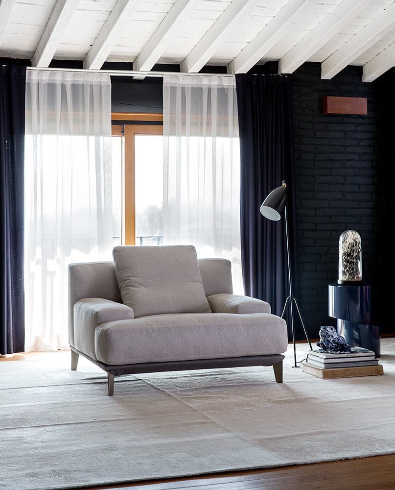Chair Ronny Italian manufacturer Alberta Salotti. The presented model square the chairs are made on a frame of solid wood. Armrests square soft. The model is fully upholstered with textile in a gray tone. Filler of pillows from goose down. The modern style of execution.