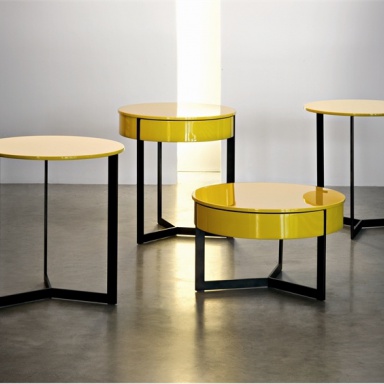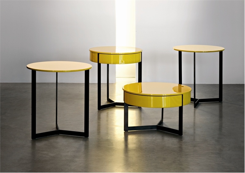 Sign table from the Italian manufacturer Lema. The model is finished in bronze and spanam. A coffee table, a perfect choice for a bedroom in a modern style. Colors: yellow, red, brown, black.