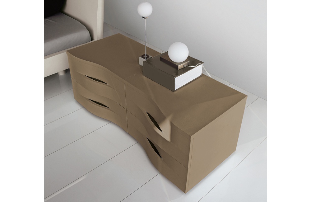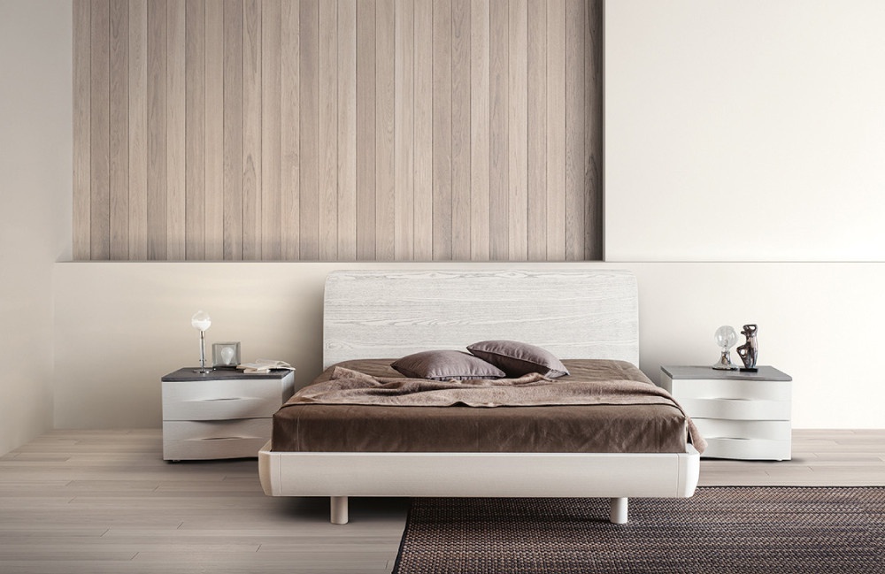 Bedroom (Suite bedroom) Twin from the Italian manufacturer Cenedese. The set includes: double bed, bedside tables and chest of drawers. Frame, body - natural wood. The surface is treated with lacquer. Upholstery - leather. The model is made in modern style. Colours in stock.