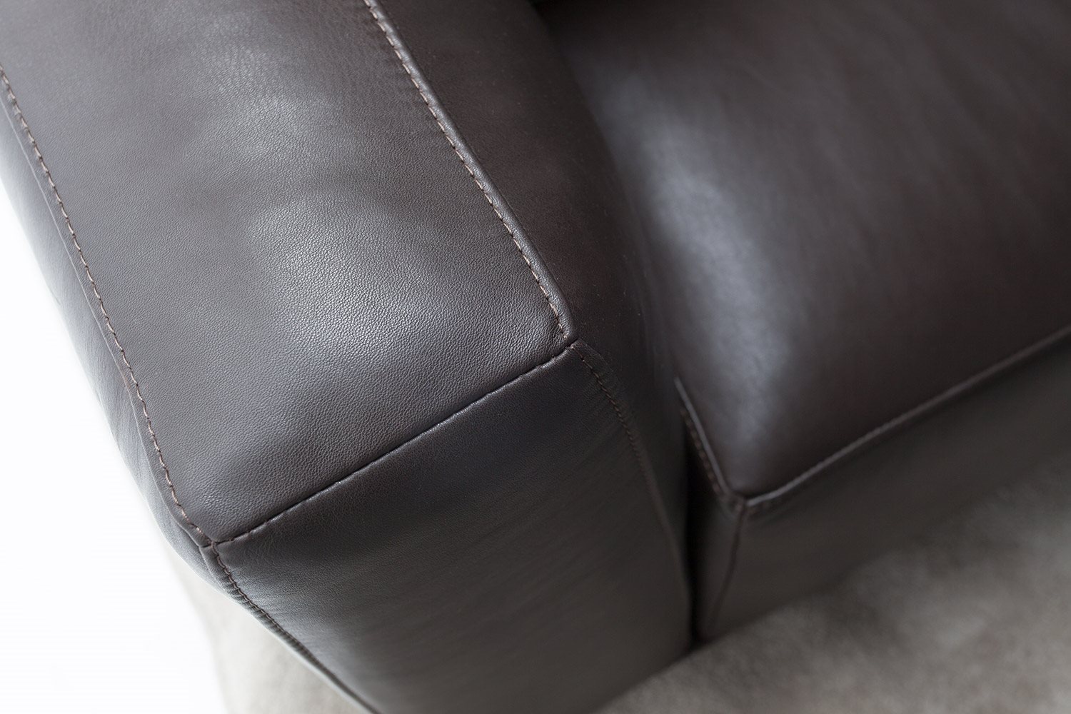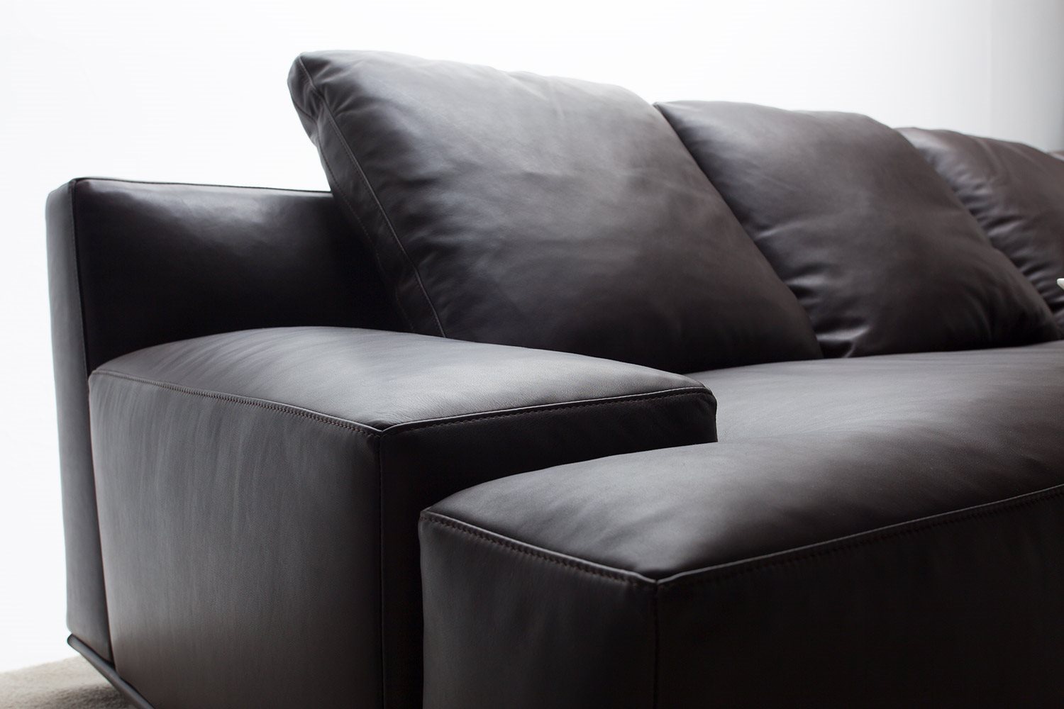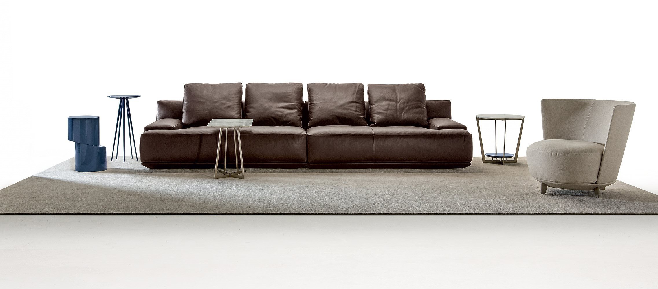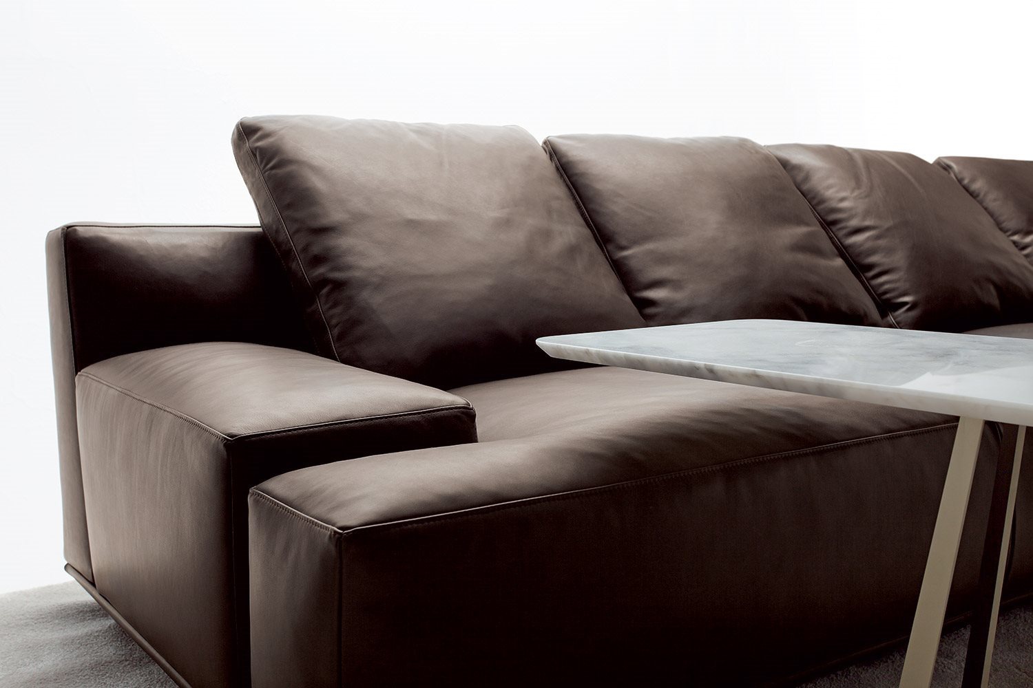 Sofa quadruple Morrison Italian manufacturer Alberta Salotti. Presents a model of rectangular shape sofa in leather upholstery. Shape sofa rectangular shape, removable cushions filled with goose down. Color scheme from the manufacturer in a brown version. A modern solution for living room.