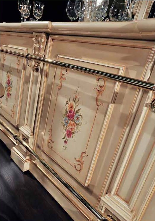 Bar (Suite bar) from the Italian manufacturer Mirandola Export. This set includes bar counter, bar Cabinet and bar stools. The frame is made of wood, the table-top stand from marble, upholstery leather. The facade is decorated with the original decorative pattern. Picturesque luxury set Mirandola Export for decorating a stylish bar will want to have everyone in your home.
