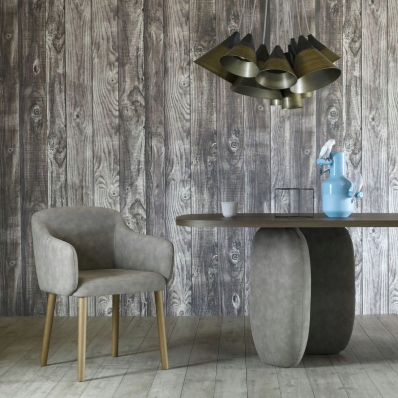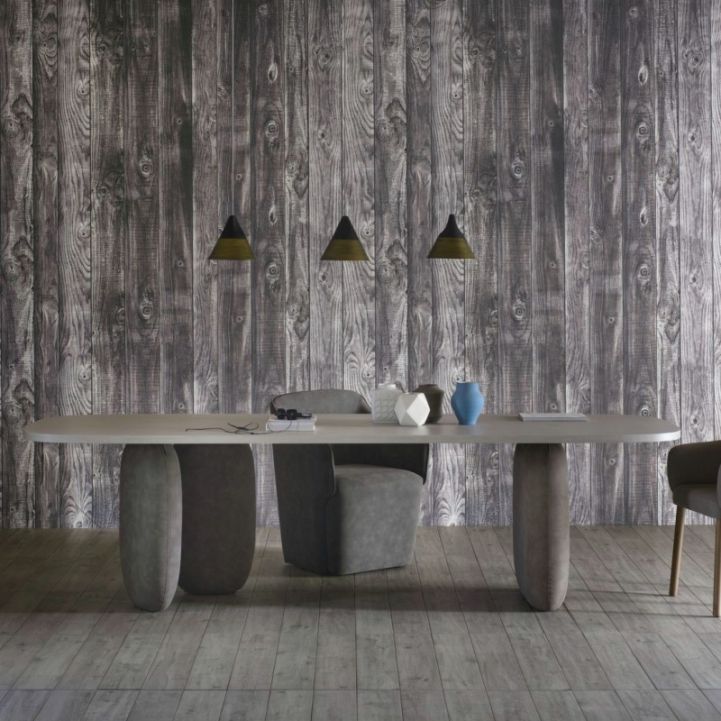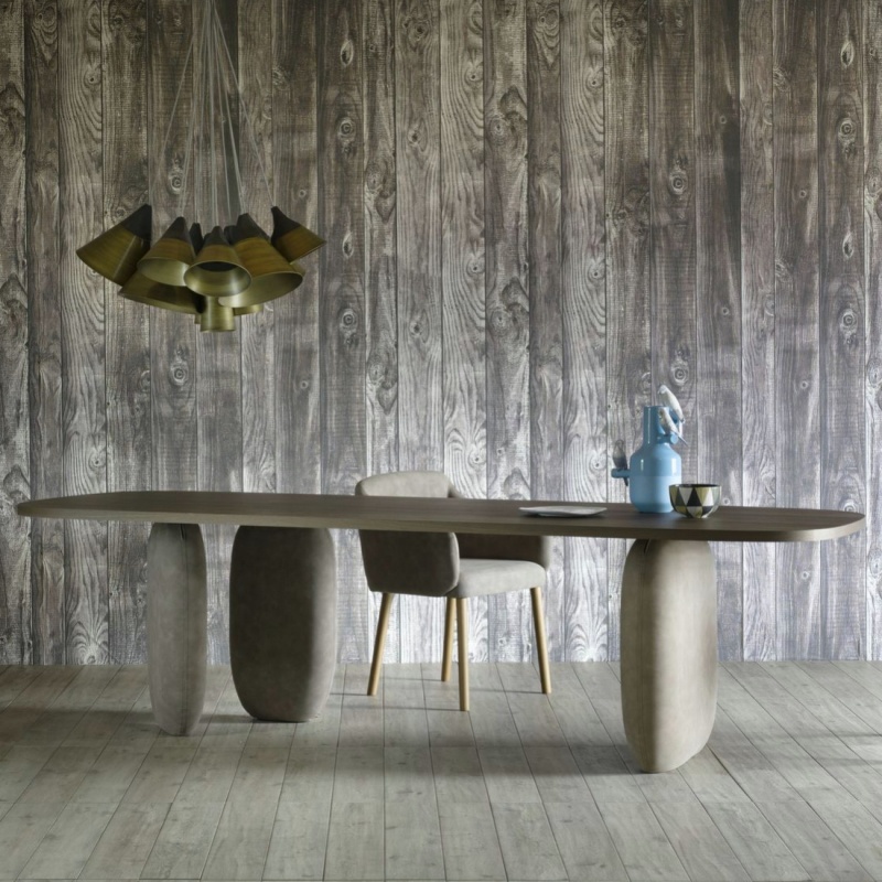 Dining table Soap from the Italian manufacturer Miniforms. The model is made from natural wood. Legs upholstered in fabric. The style is classic. Colours in stock.