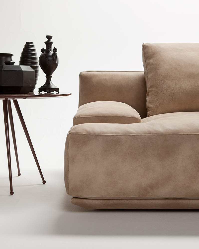 Bruce corner sofa Italian manufacturer Alta Salotti. The model of the sofa with low backrest and armrests are made on a frame of solid wood. Upholstery leather in brown tone. A modern solution for living room.