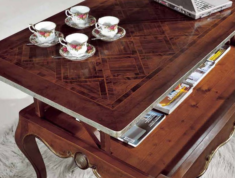 Coffee table from the Italian manufacturer Mirandola Export. The model is made in classic style. The frame is made of wood. For convenience a table has an opening where the top can be folded magazines, books and useful stuff. Decorative legs, undulating bottom of the table to make the model beautiful and necessary element of the interior.