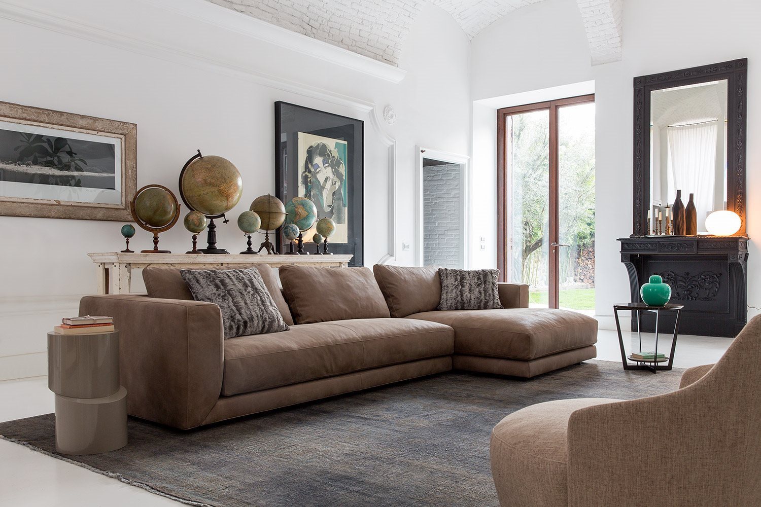 Sofa corner Floyd Italian manufacturer Alberta Salotti. Presents a model of the sofa is made on a frame of solid wood, the upholstery is genuine leather. The rectangular armrests, soft. The filler of polyurethane foam. Color suggestion from the manufacturer in a light brown tone. A modern solution for living room.