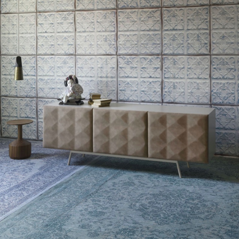 Square stand from Italian manufacturer Miniforms. The case is natural wood. Upholstery - leather. Legs - metal. The model is made in modern style. Colours in stock.