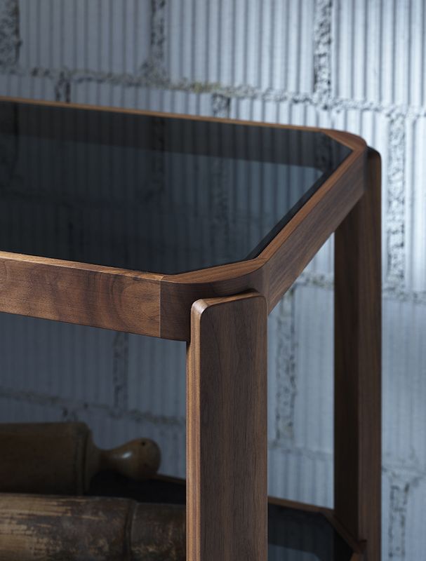 Rack Pina from the Italian manufacturer Miniforms. The frame is natural wood. The surface is treated with lacquer. Shelves - glass. The model is made in modern style. Colours in stock.