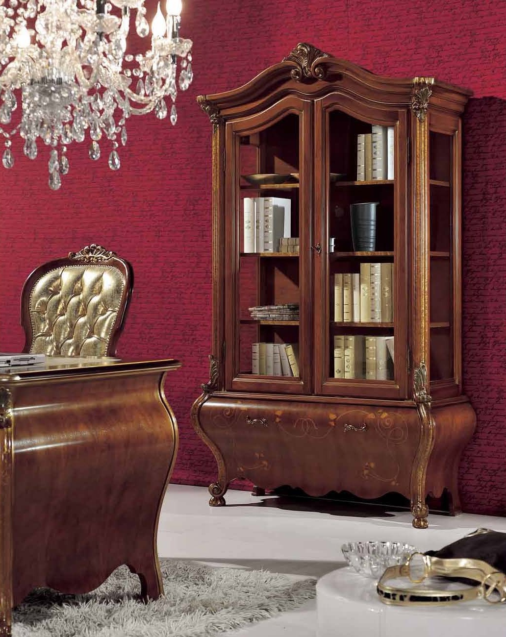 Bookshelf from Italian manufacturer Mirandola Export. The classic model. The frame is made of wood. The Cabinet has two glass doors, glass side panels and a drawer. The product is decorated with original carved decoration. Elegant legs give the Cabinet a special charm. Bookcase Mirandola Export will easily fit into any interior.