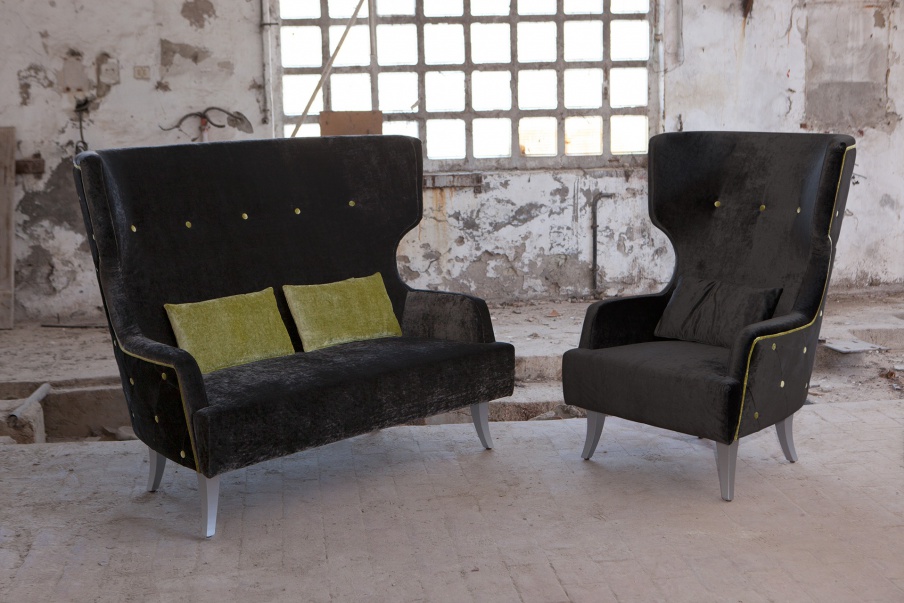 Two-seater sofa from the collection of Donna Home from the Italian manufacturer Domingo Salotti. Cozy design sofa with high back and plugs provide comfortable daily rest. The frame and curved legs made from poplar wood or pine wood, lacquered legs. Padding - monochrome textiles from the company portfolio. Form-fitting back and side panels quilted diamonds and finished with contrasting buttons. The filler is polyurethane foam and Dacron. Seat with extra volume. Colors to choose from a collection company.