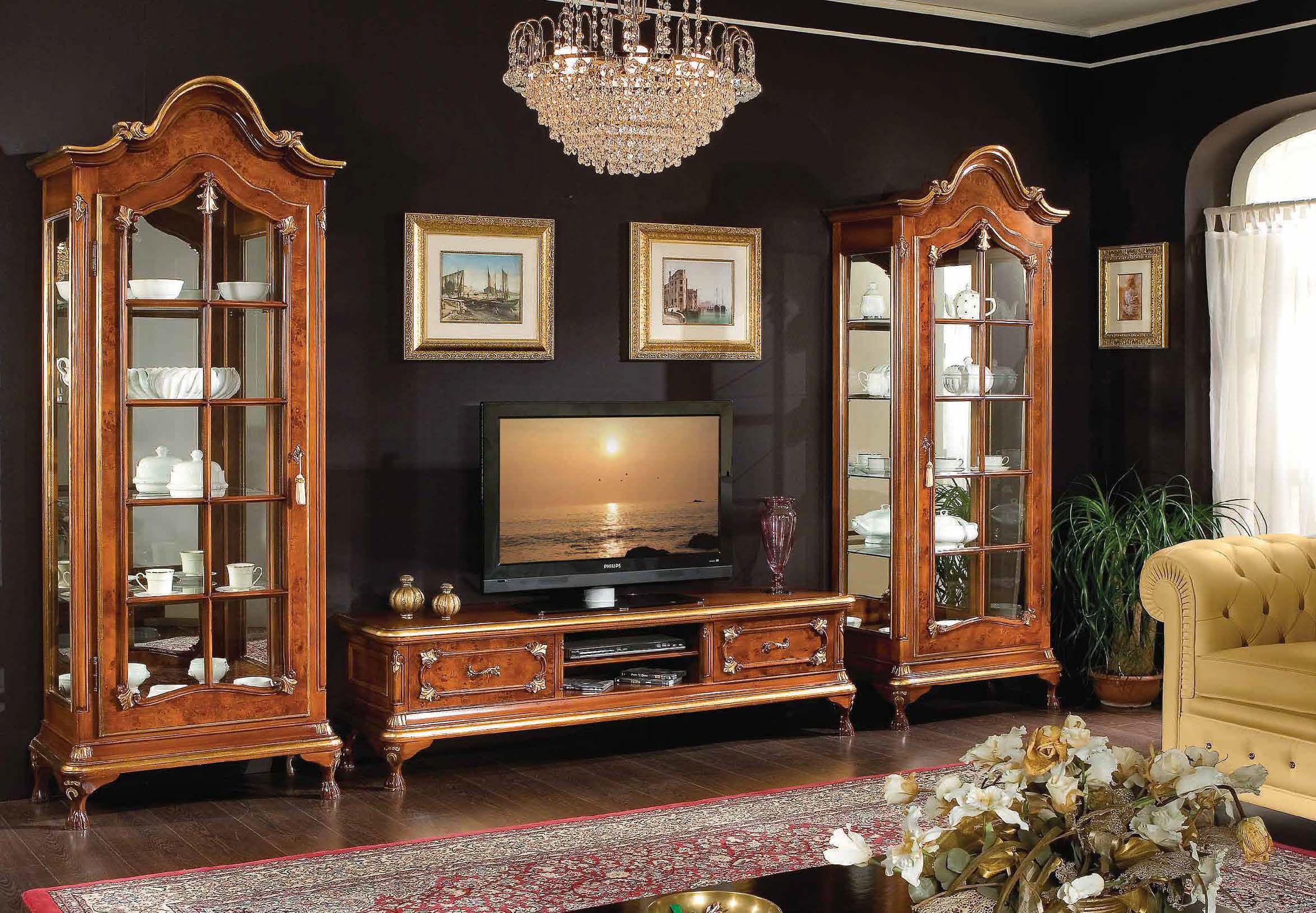 Showcase from Italian manufacturer Scappini & C. the Frame is natural wood. Decorative elements thread of manual work. The surface is treated with lacquer. Shutters, shelves - glass. The model is made in classic style. Colours in stock.