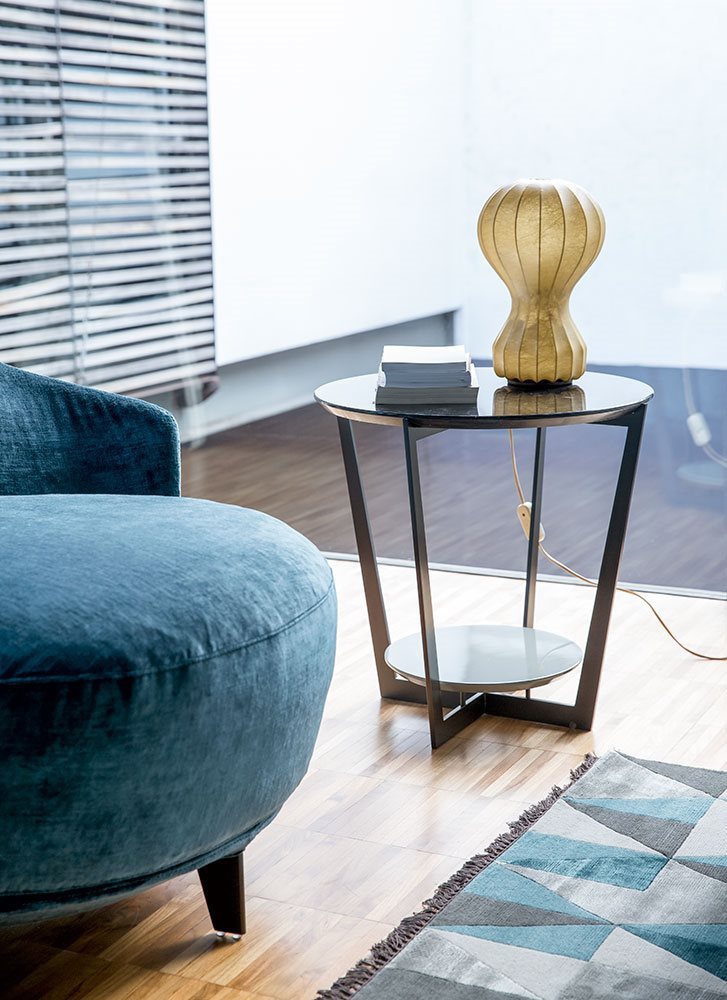 Frisco coffee table Italian manufacturer Alberta Salotti. Presents a table made on a metal frame, the table top of black marble and MDF. Color in combination of dark tones of marble and bronze. A modern solution for living room or public spaces.