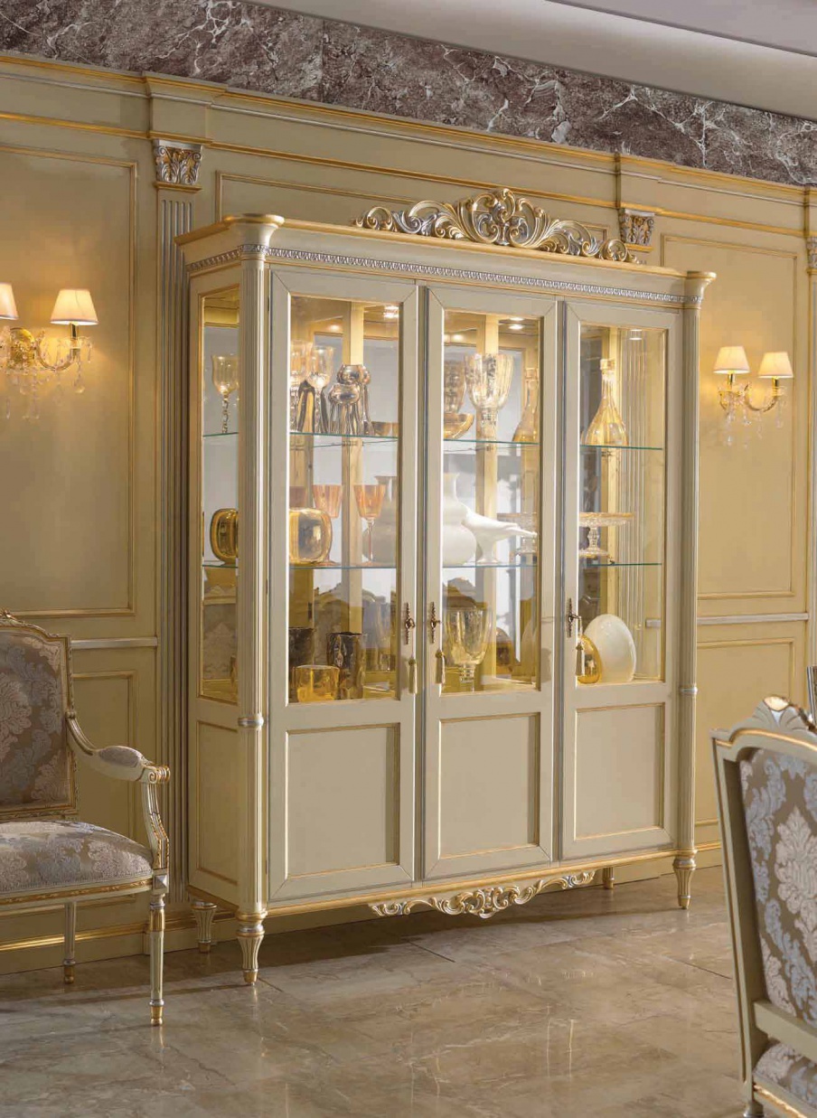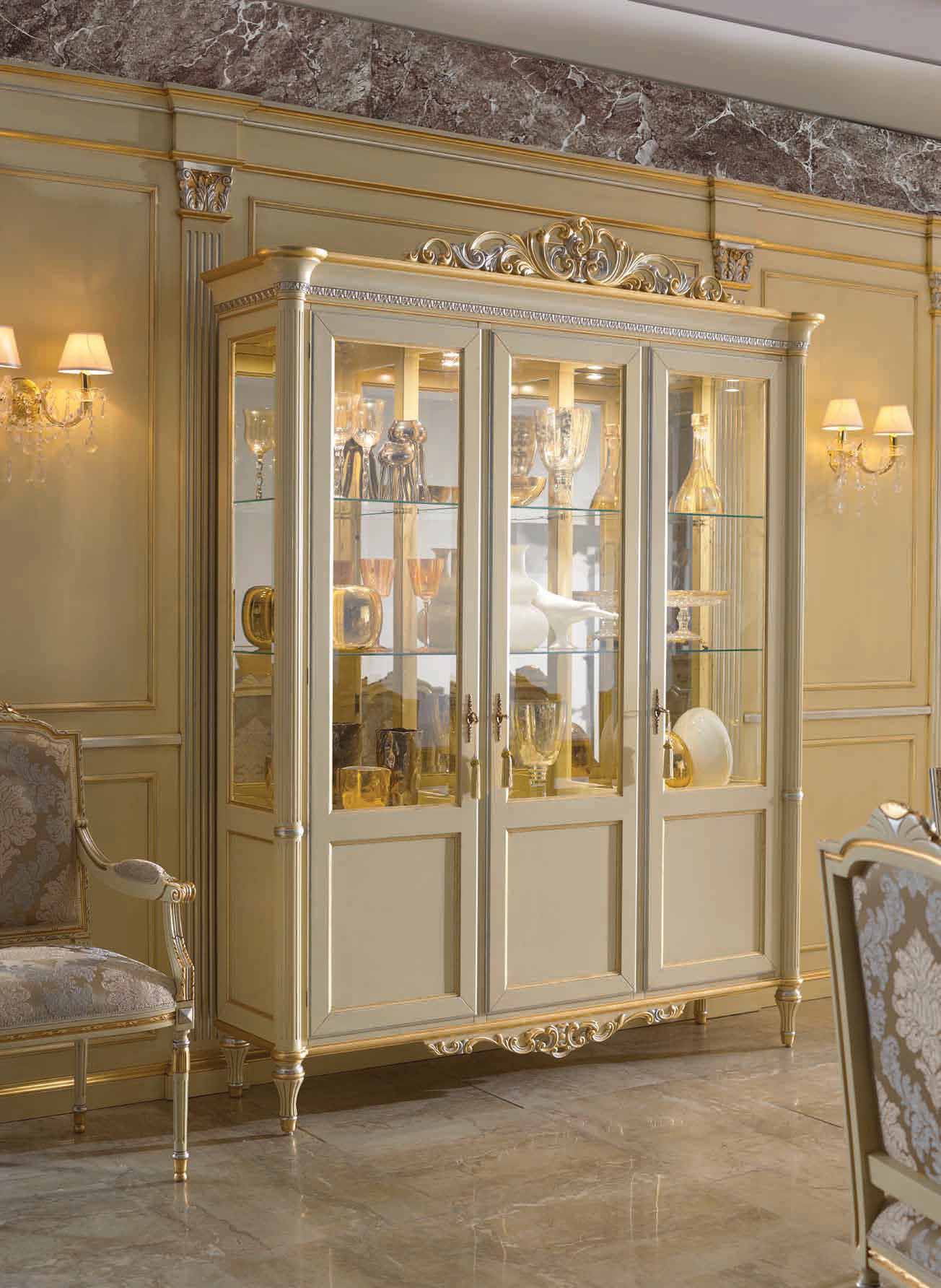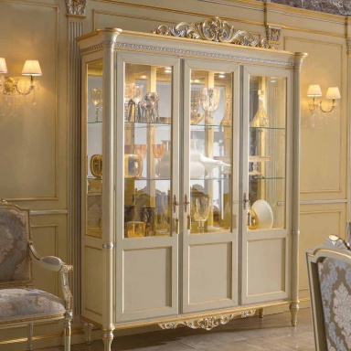 Showcase from Italian manufacturer Scappini & C. the Frame is natural wood, hand carved. The surface is treated with lacquer. Shutters, shelves - glass. The model is made in classic style. Colours in stock.