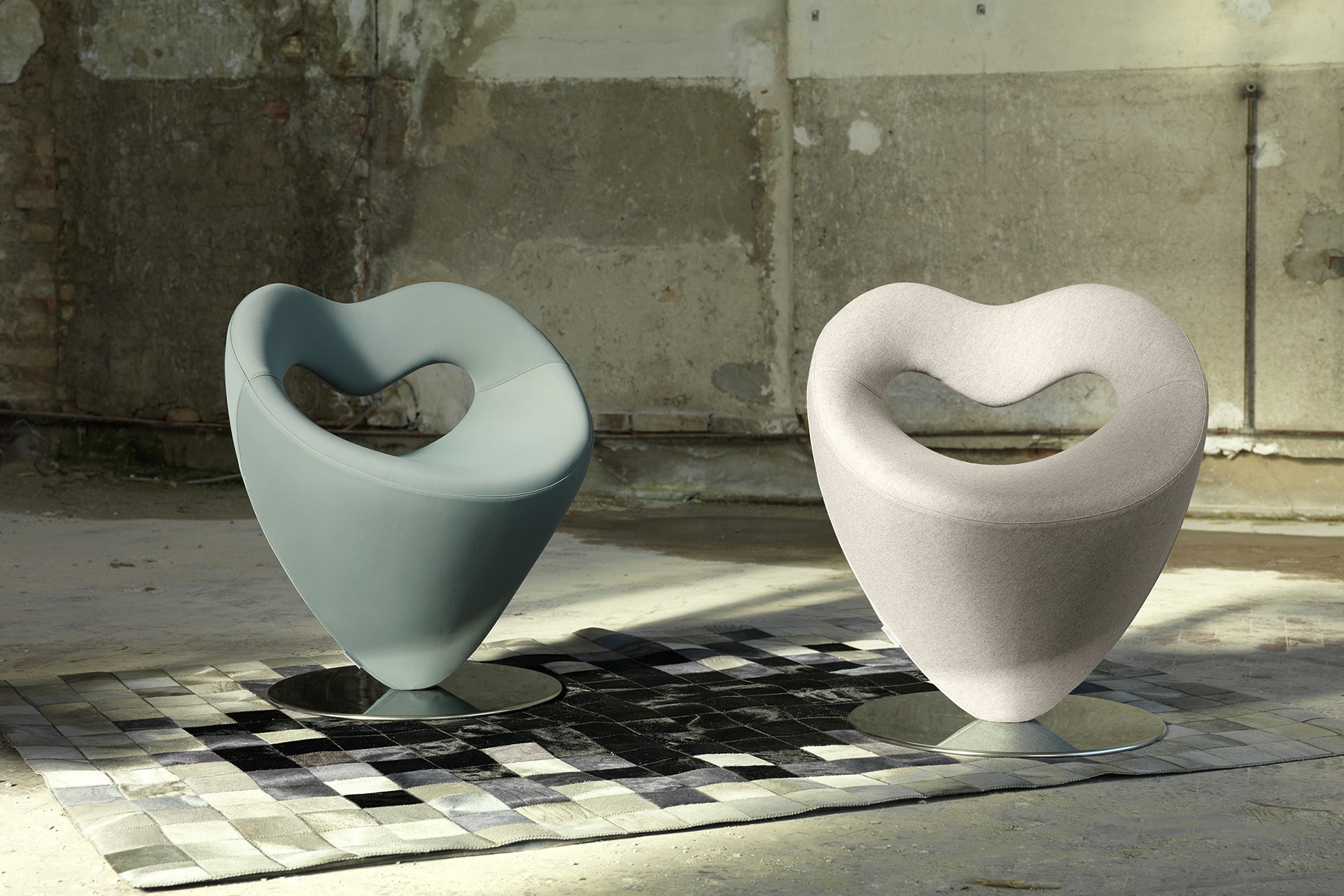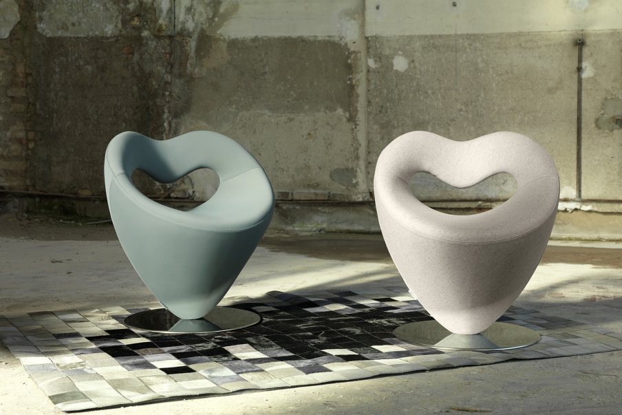 Chair Lov from the collection Home from the Italian manufacturer Domingo Salotti. Figure chair with a slotted back from the designer Simone Micheli, is made in the tradition of postmodernism, can be used indoors and outdoors. The frame is a tubular structure in chromed metal. Round base made of cast metal. Upholstery - textiles from the company's range, the filling foam of the fibrous structure to maintain the shape and add volume. Colors to choose from a collection company.