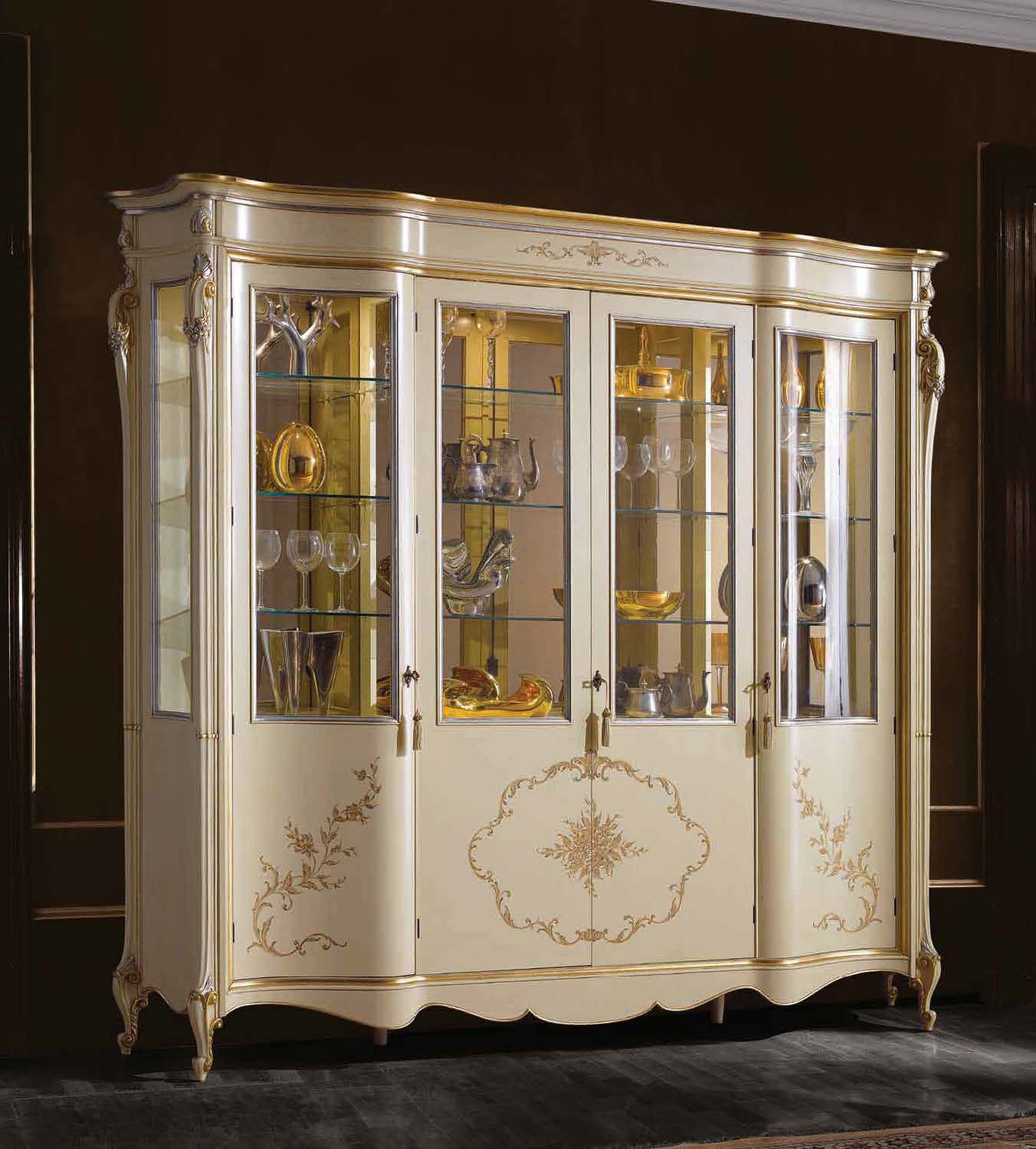 Showcase from Italian manufacturer Scappini & C. the Frame is natural wood. Decorative elements thread of manual work. Shutters, shelves - glass. The model is made in classic style. Colours in stock.