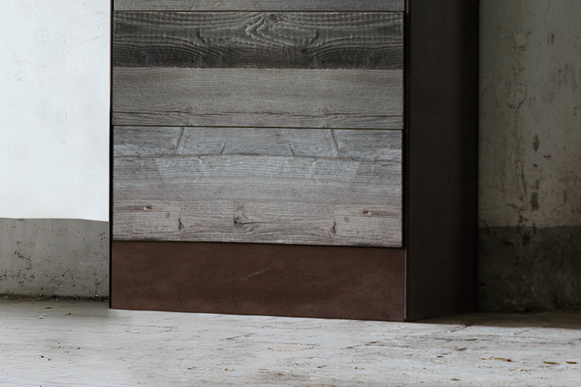 Bookcase Weston from the collection Home from the Italian manufacturer Domingo Salotti. The Cabinet is made in the popular eco-style, which is characterized by the use of arrays of solid wood, processed using traditional technologies. For Cabinet uses an array of coniferous wood, aged by the sun and other weather phenomena to the existence of variegated color and veins. The enclosure frame is assembled on an iron frame, treated under antique rust; the front of the seven drawers and side panels made of antique and restored wood with a grayish bloom and manifested a characteristic cutoff.