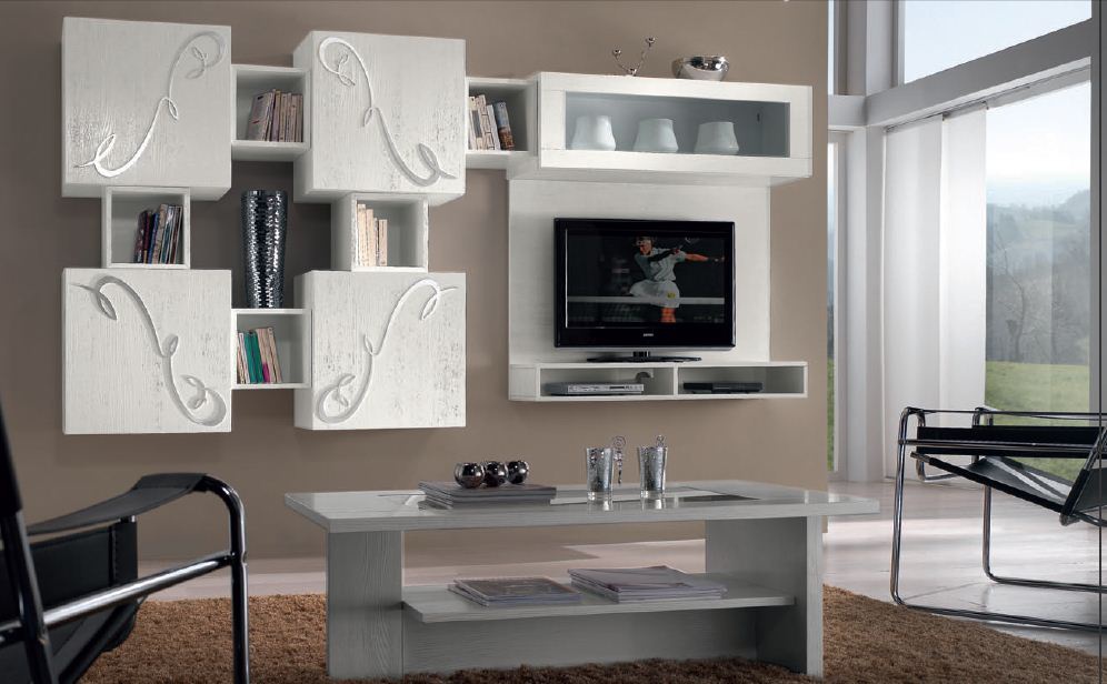 Giselle sofa set from the Italian manufacturer Arve Style. This set includes: tractor-mounted modular storage system and a coffee table with glass top. Frame, base made of solid wood. Finish - porous veneer. The surface is treated with silvery white lacquer patina, lurks the figure of the wood. The facade may be adorned with floral ornaments in sheet silver. The modern design. A great choice for the living room. Provided a wide range of colors.