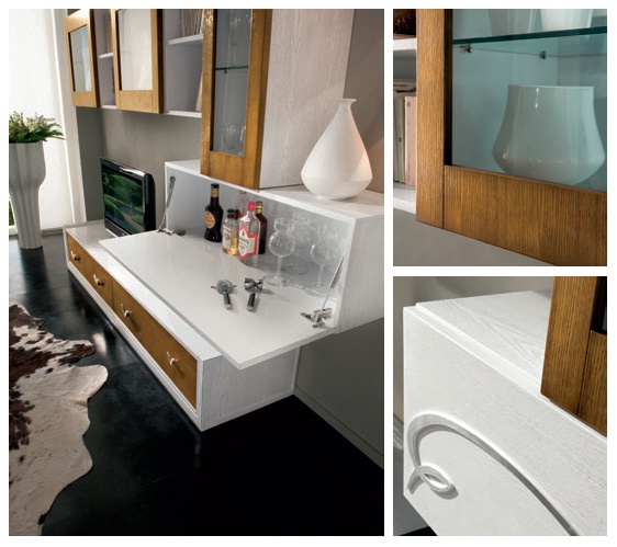 The modular storage system of Giselle from the Italian manufacturer Arve Style. The module consists of floor Cabinet with 2 partitions, wall cabinets, open niches. Frame, base made from solid wood. Finish is the combination of light walnut veneer and glossy white lacquer. Accessories metal in leaf silver. D?cor plant stands carved ornament. The style is modern. The perfect choice for the living room. Available a wide range of shades/finishes.