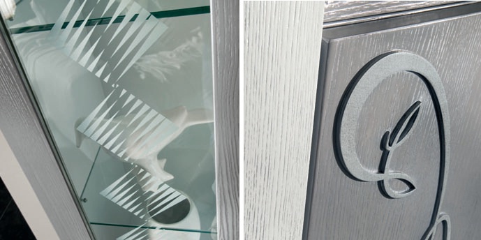 frame, base: solid wood accessories: metal shutters, shelves: glass coating: lacquered coating: silver plated |