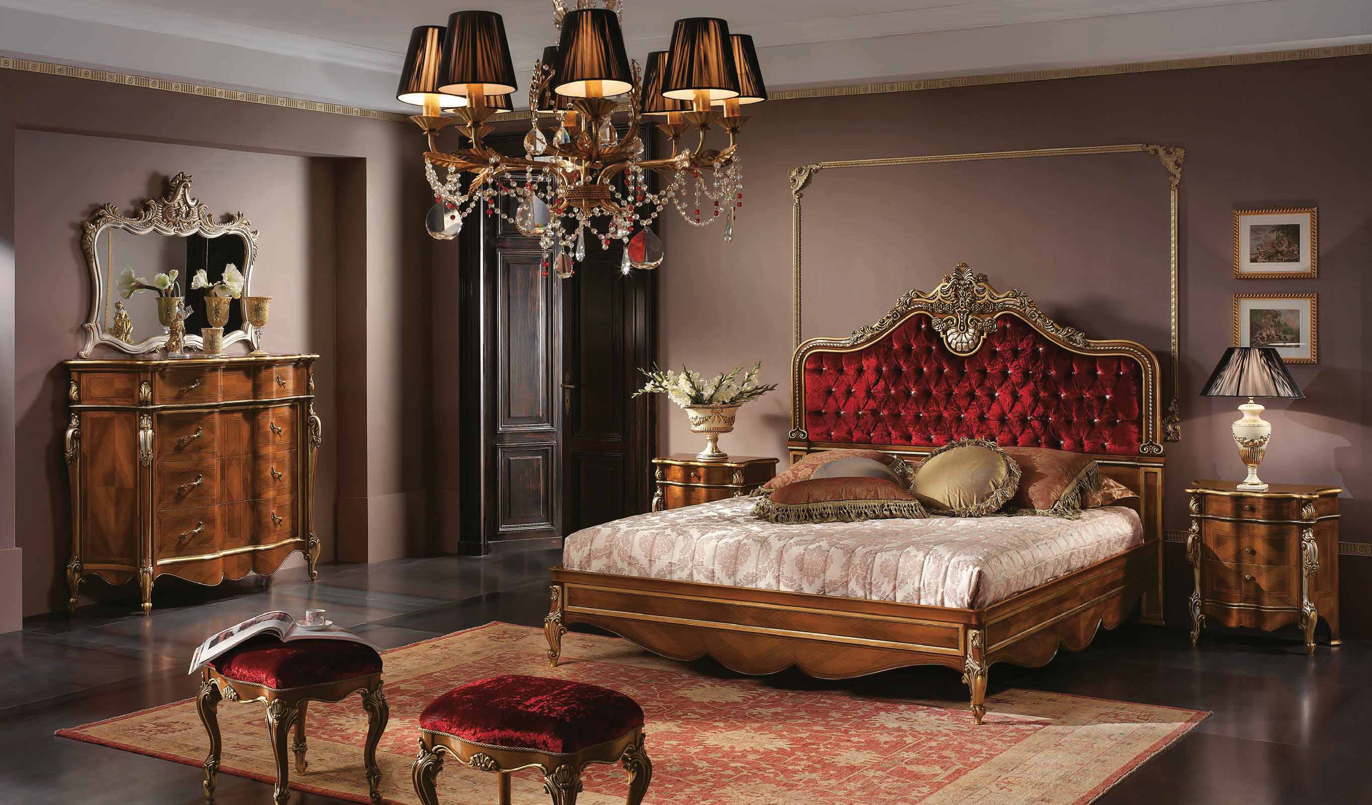 Double bed from Italian manufacturer Scappini & C. the Frame is natural wood, hand carved. Upholstery - textiles. The model is made in classic style. Colours in stock.