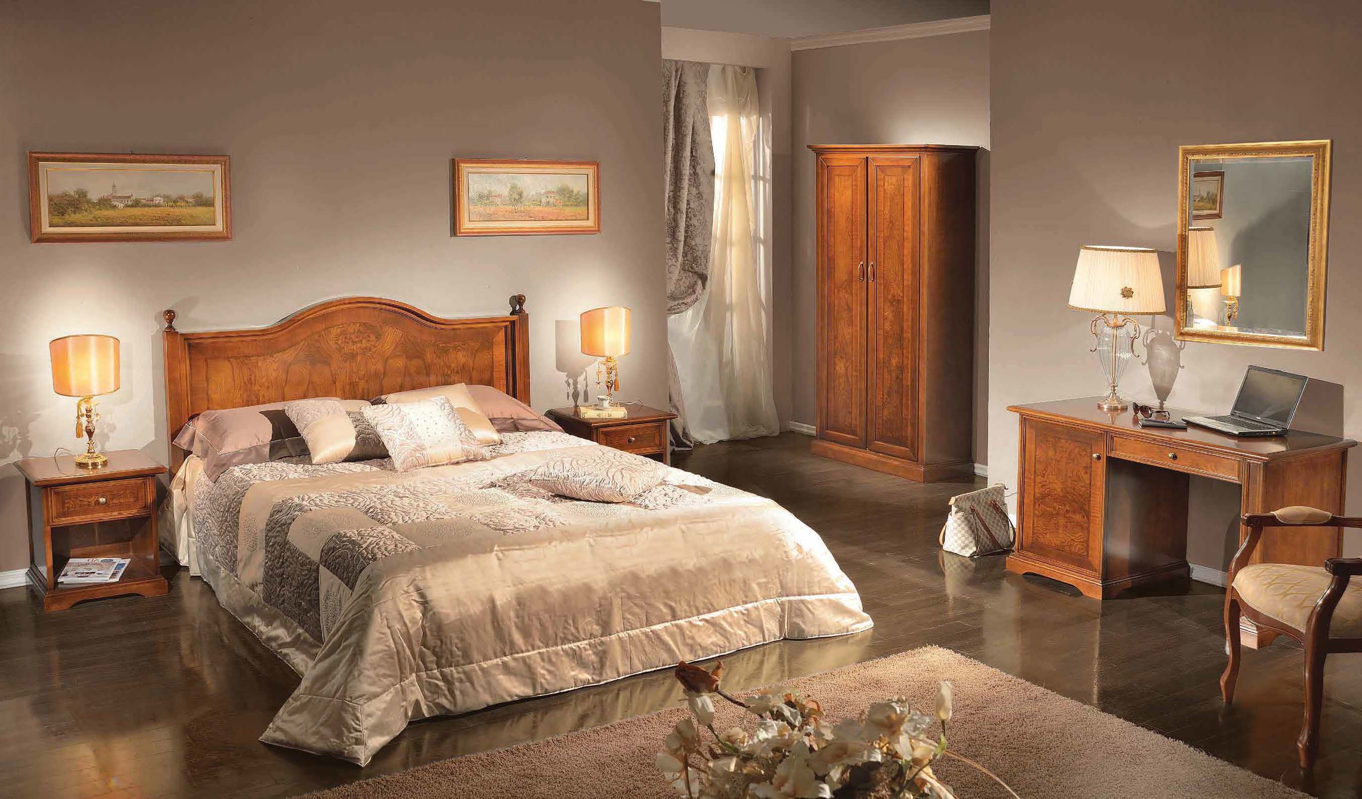 Bedroom (Suite bedroom) from the Italian manufacturer Scappini & C. the set includes: double bed, bedside tables, Desk and wardrobe. Frame, body - natural wood. The surface is treated with lacquer. Handles - metal. The model is made in classic style. Colours in stock.