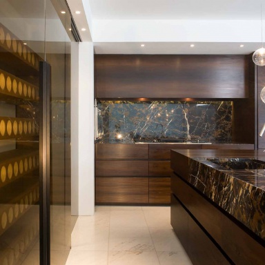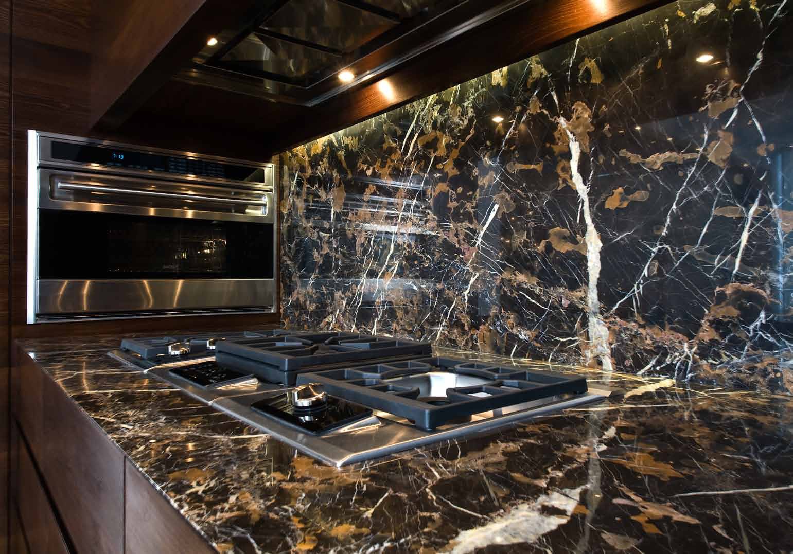 Kitchen (kitchen set) Roma from Italian producer Matteo Gennari. The case is natural wood. The surface is treated with lacquer. Countertop - marble Port Laurent. The model is made in modern style. Colours in stock.