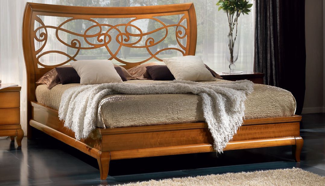 Mir? bed from Italian manufacturer Arve Style. Bed with high headboard. Base, frame made from solid wood, finished in walnut veneer. The decor is rich carving of the headboard. The product is in the classic style fits perfectly in a sophisticated bedroom. Available model with drawers. Offers a wide choice of finishes.